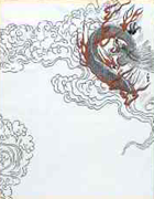 日本画の定番とも言える龍を鮮やかな日の出と絡ませています。龍の頭が雲間に隠れフロント側から頭を出しています。